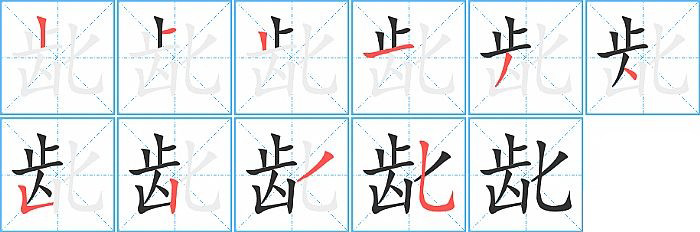 - 问:写"龀"字第10笔是什么笔画?答:竖弯钩【