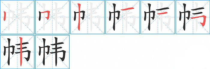 帏的笔画为7画, 笔顺为