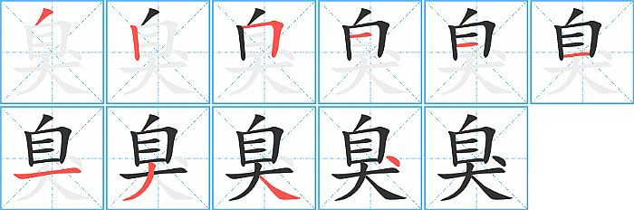 - 问:写"臭"字第10笔是什么笔画?答:点【