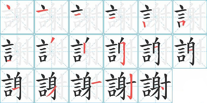 - 问:写"謝"字第15笔是什么笔画?答:横【