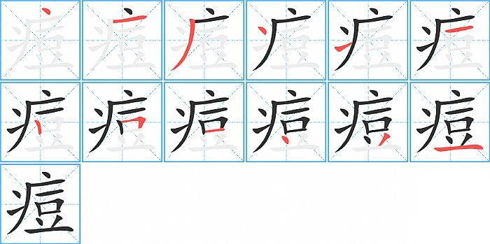 - 问:写"痘"字第12笔是什么笔画?答:横【