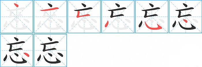 忘的笔画为7画, 笔顺为