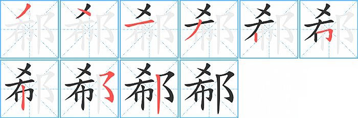 撇、点、横、撇、竖、横折钩、竖、横折折折钩/横撇弯钩、竖