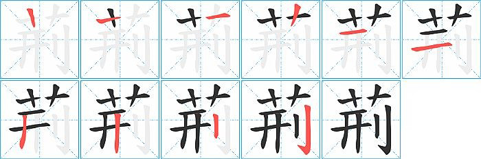 - 问:写"荊"字第9笔是什么笔画?答:竖钩【
