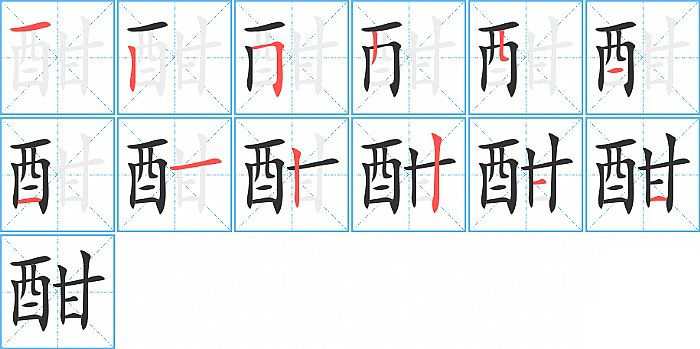 - 问:写"酣"字第11笔是什么笔画?答:横【