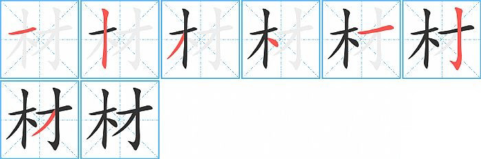 - 问:写"材"字第7笔是什么笔画?答:撇【