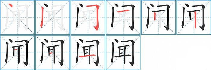 - 问:写"闻"字第8笔是什么笔画?答:横【