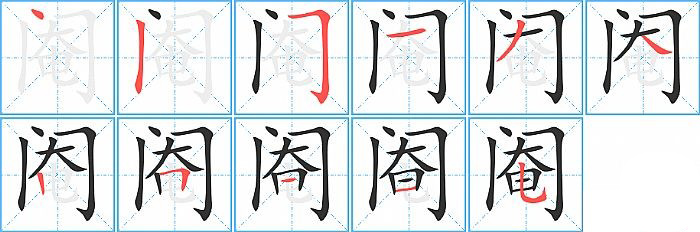 - 问:写"阉"字第10笔是什么笔画?答:横【