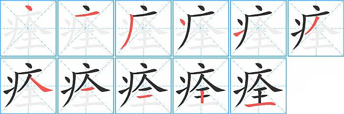 - 问:写"痊"字第10笔是什么笔画?答:竖【