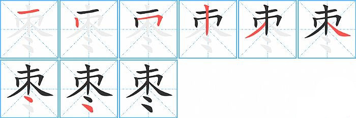 - 问:写"枣"字第5笔是什么笔画?答:撇【