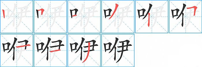 - 问:写"咿"字第8笔是什么笔画?答:横【