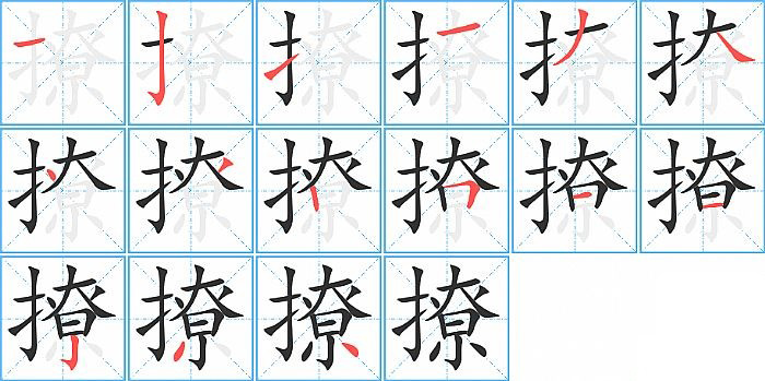 - 问:写"撩"字第12笔是什么笔画?答:横【