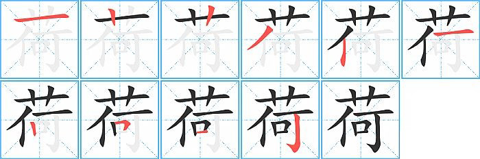 - 问:写"荷"字第10笔是什么笔画?答:竖钩【