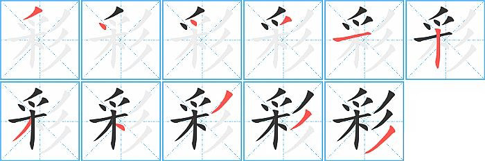 - 问:写"彩"字第10笔是什么笔画?答:撇【