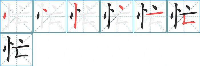 - 问:写"忙"字第6笔是什么笔画?答:竖折【