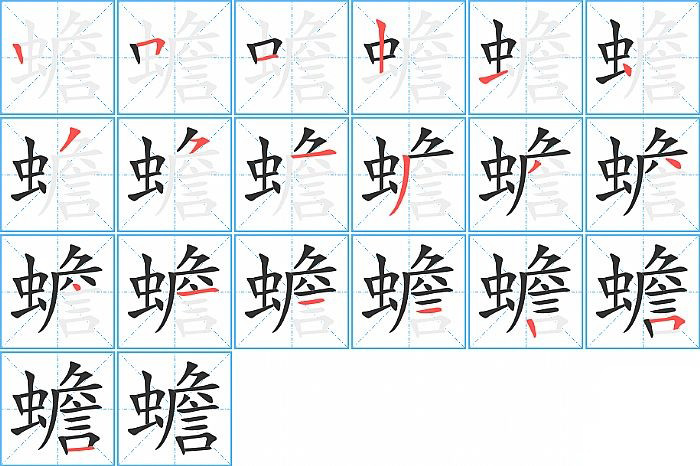 - 问:写"蟾"字第19笔是什么笔画?答:横【