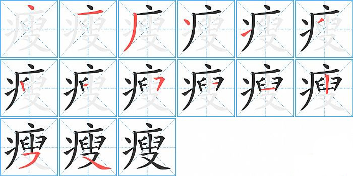 - 问:写"瘦"字第12笔是什么笔画?答:竖【