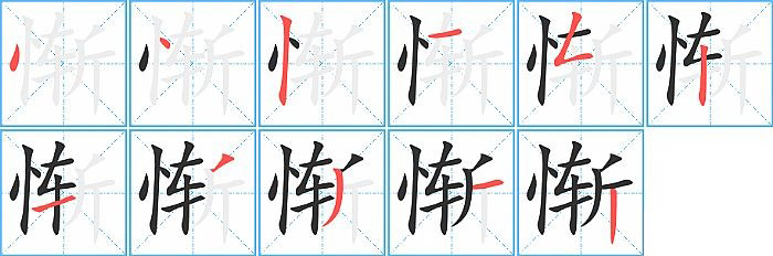 - 问:写"惭"字第10笔是什么笔画?答:横【