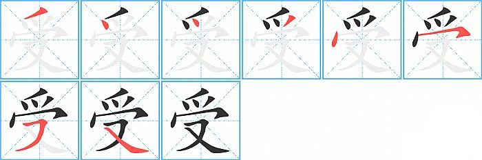 - 问:写"受"字第8笔是什么笔画?答:捺【