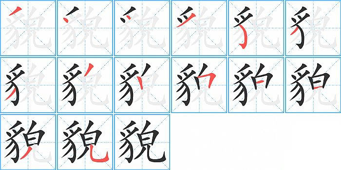 - 问:写"貌"字第13笔是什么笔画?答:撇【
