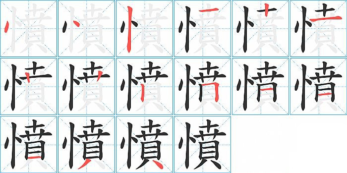 - 问:写"憤"字第14笔是什么笔画?答:撇【