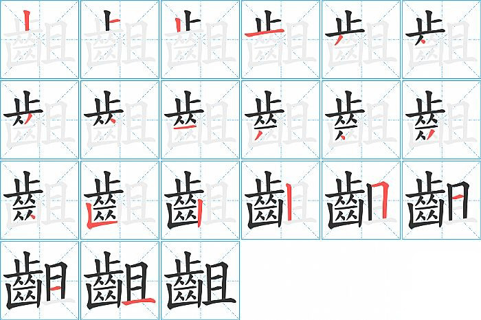 - 问:写"齟"字第20笔是什么笔画?答:横【