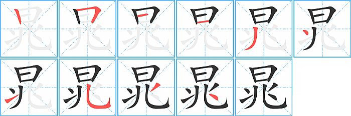- 问:写"晁"字第10笔是什么笔画?答:点【