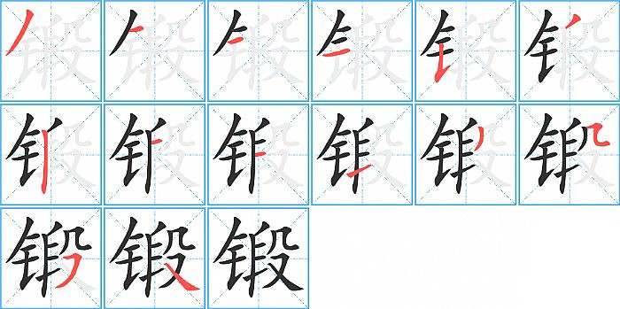 - 问:写"锻"字第9笔是什么笔画?答:横【