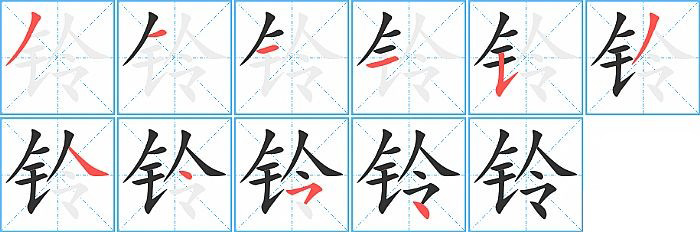 - 问:写"铃"字第4笔是什么笔画?答:横【