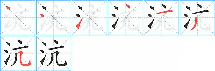 点、点、提、点、横、撇、横折弯钩/横斜钩
