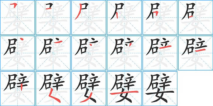 - 问:写"嬖"字第15笔是什么笔画?答:撇【