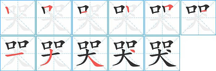 - 问:写"哭"字第8笔是什么笔画?答:撇【