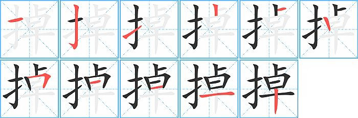 - 问:写"掉"字第10笔是什么笔画?答:横【