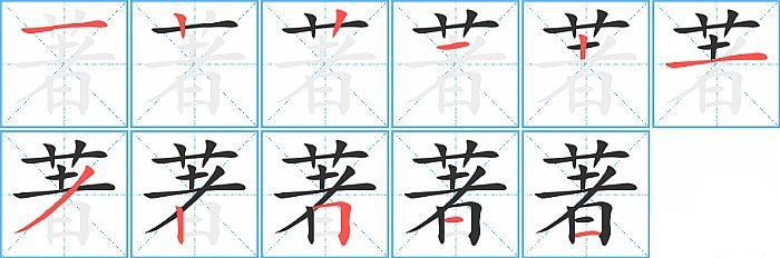 - 问:写"著"字第10笔是什么笔画?答:横【