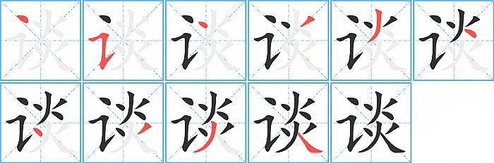 - 问:写"谈"字第10笔是什么笔画?答:捺【