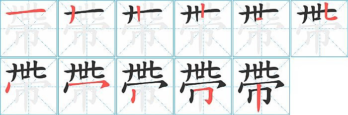 - 问:写"帶"字第10笔是什么笔画?答:横折钩【