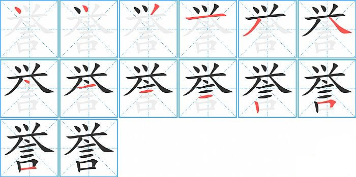 - 问:写"誉"字第13笔是什么笔画?答:横【