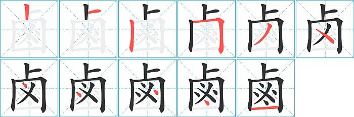 - 问:写"鹵"字第3笔是什么笔画?答:竖【