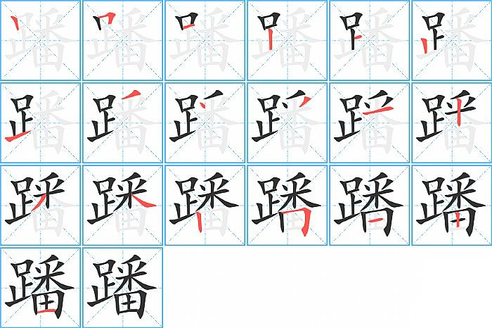 - 问:写"蹯"字第19笔是什么笔画?答:横【