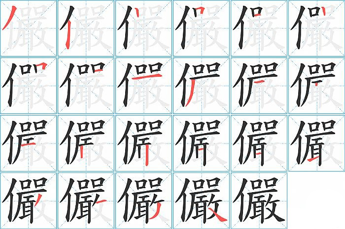 - 问:写"儼"字第20笔是什么笔画?答:撇【