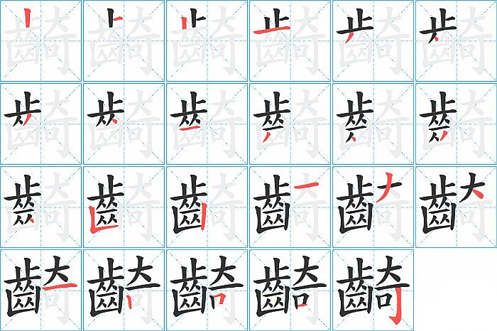 - 问:写"齮"字第23笔是什么笔画?答:竖钩【