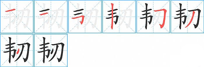 - 问:写"韧"字第6笔是什么笔画?答:撇【