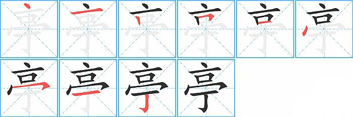 - 问:写"亭"字第9笔是什么笔画?答:竖钩【