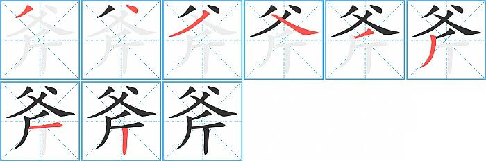 - 问:写"斧"字第5笔是什么笔画?答:撇【