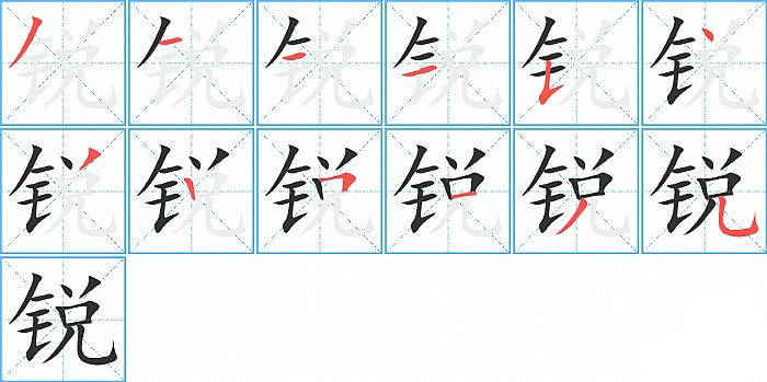 - 问:写"锐"字第12笔是什么笔画?答:竖弯钩【
