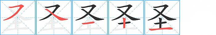 - 问:写"圣"字第5笔是什么笔画?答:横【