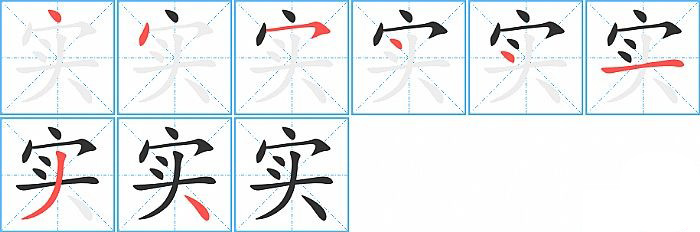 - 问:写"实"字第6笔是什么笔画?答:横【