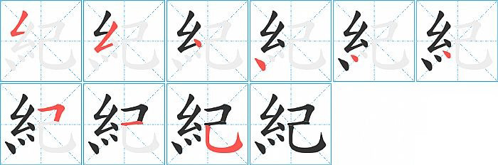 - 问:写"紀"字第8笔是什么笔画?答:横【