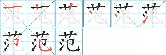 - 问:写"范"字第8笔是什么笔画?答:竖弯钩【