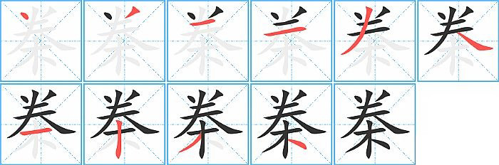- 问:写"桊"字第10笔是什么笔画?答:捺【